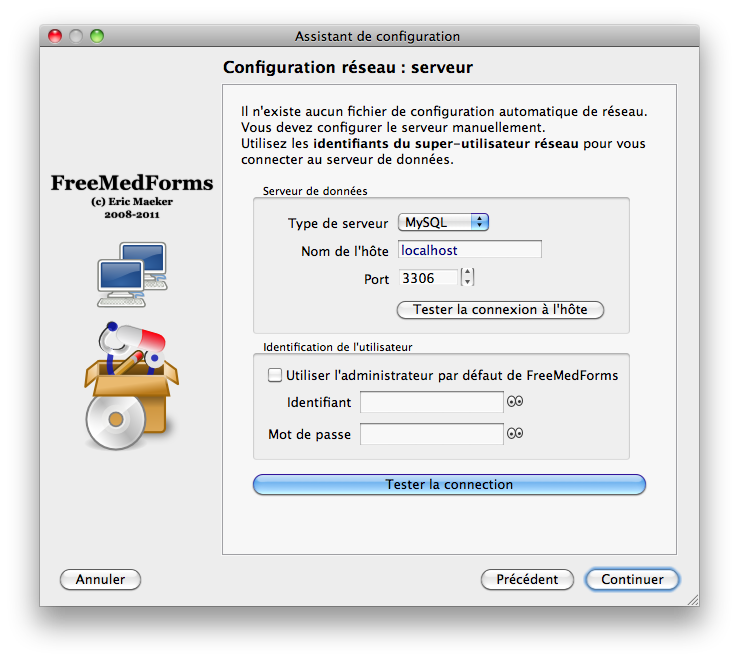 - Quelques étapes de configuration sont requises avant de démarrer le configurateur de FreeMedForms.